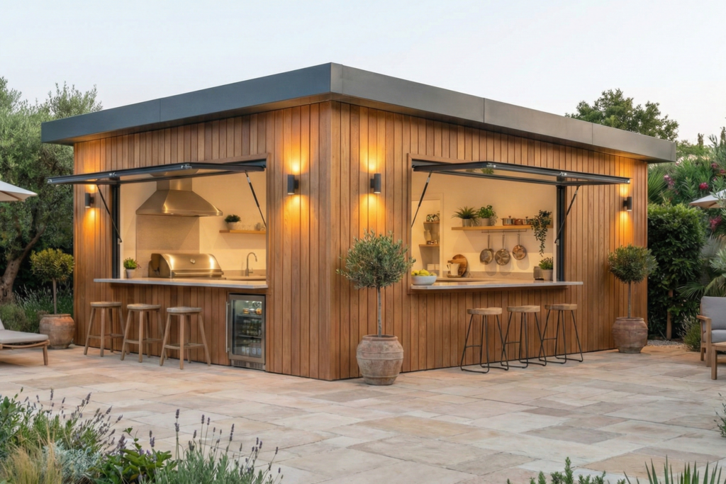 Sublimez vos extérieurs avec une cuisine d’été ouverte, un pool house moderne ou un espace détente au bord de l’eau.