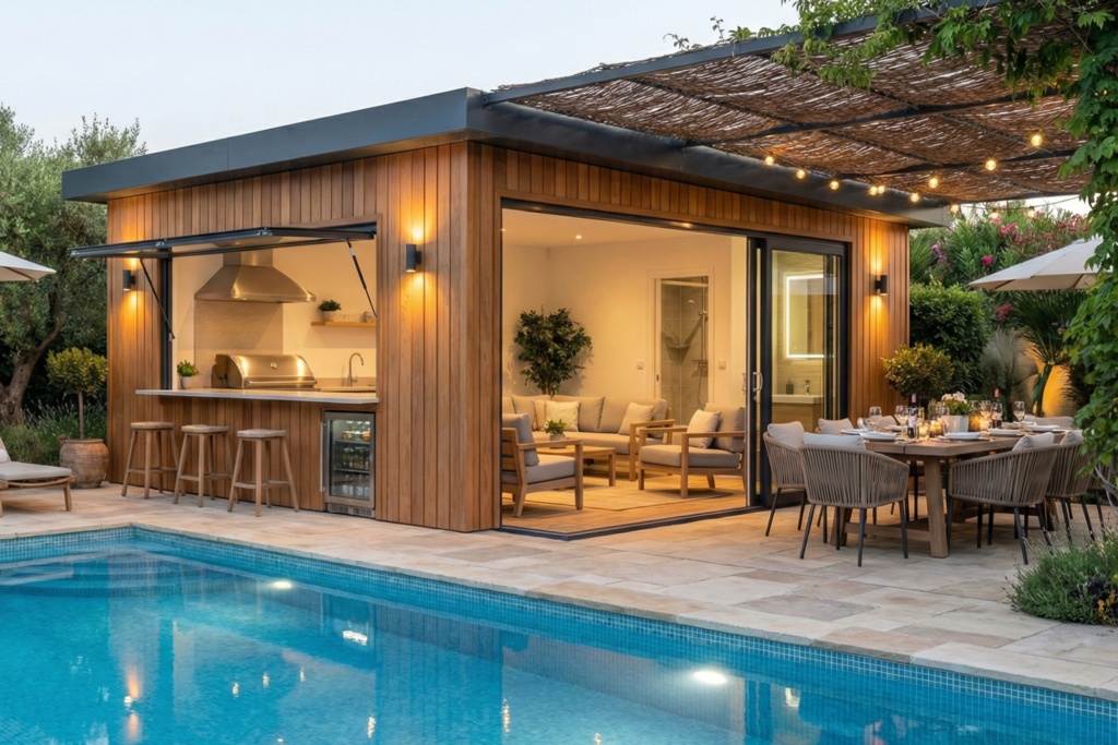 Sublimez vos extérieurs avec une cuisine d’été ouverte, un pool house moderne ou un espace détente au bord de l’eau.